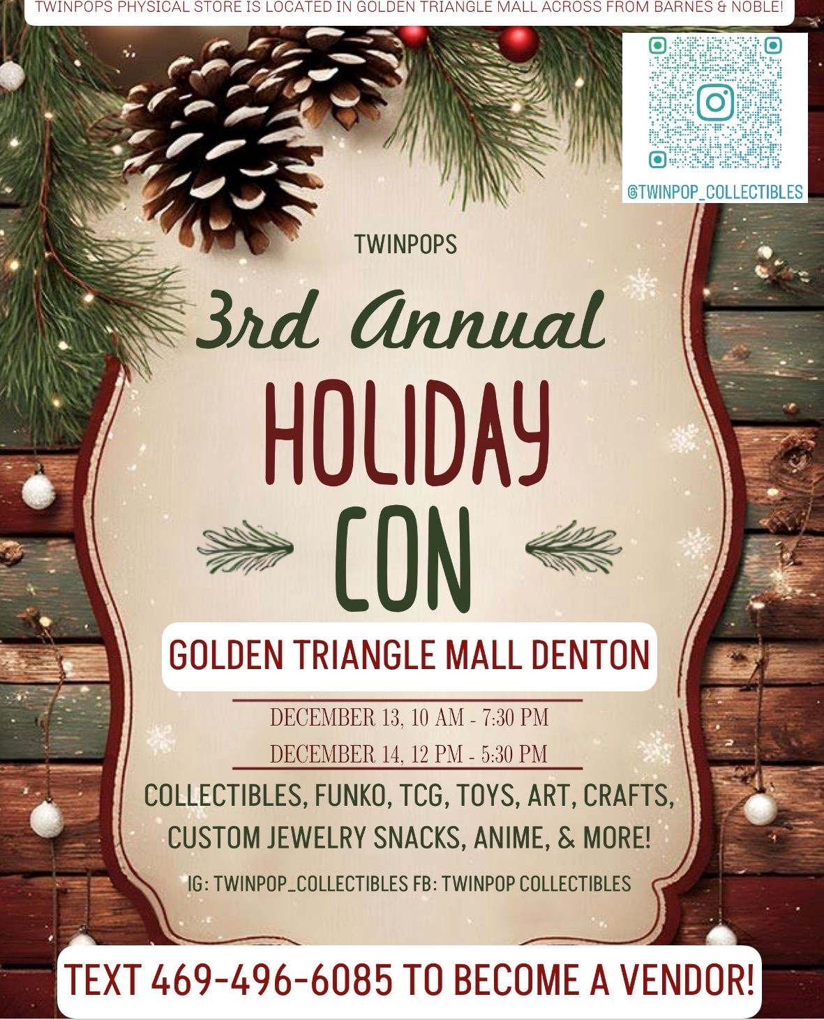 Join us for the TwinPops 3rd Annual Holiday Con at Golden Triangle Mall!